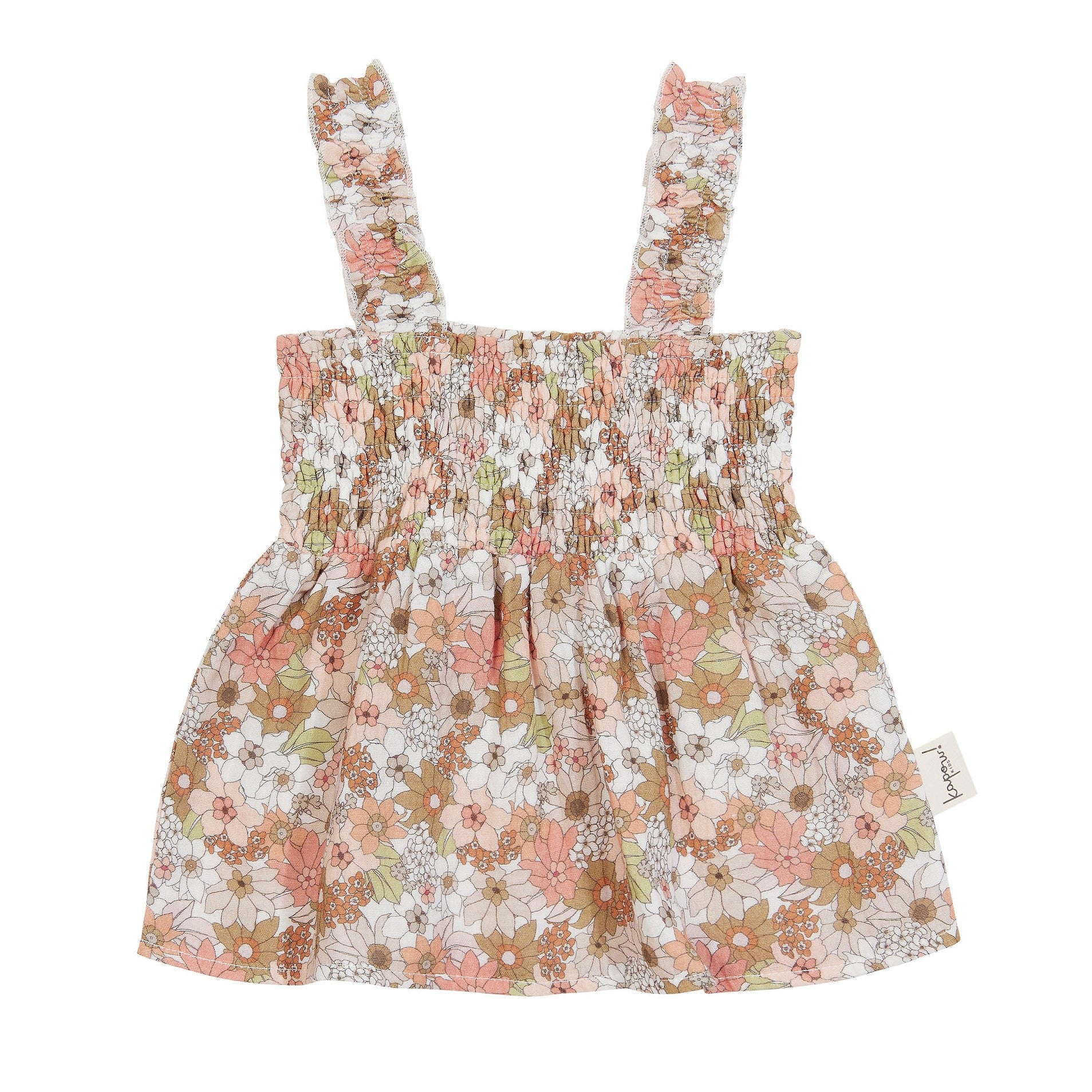 Be a fashion star in the retro Bouquet Shirred Top! This eye-catching top features a lightweight cheesecloth fabric with a pretty floral print and shirred straps and bodice for a comfy fit. Float through the day in style!