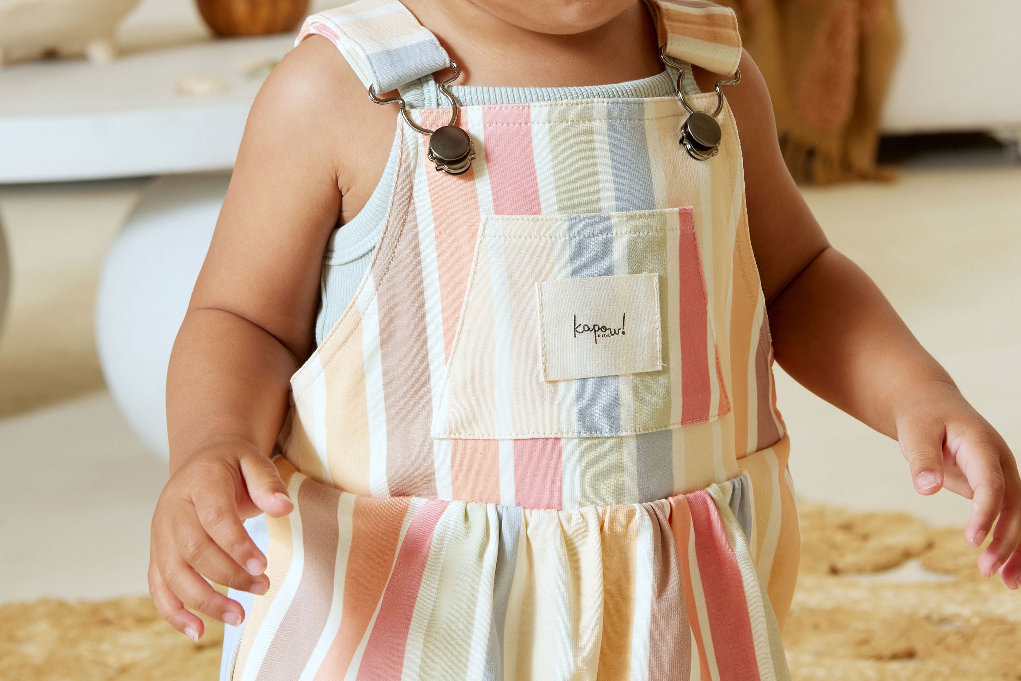 Step out in style with our Sun Stripe Romper! With adjustable straps and a cute overall style, this romper is perfect for any sunny adventure. Plus, it even has a front pocket for all your essentials. Say goodbye to boring outfits and hello to playful fashion!