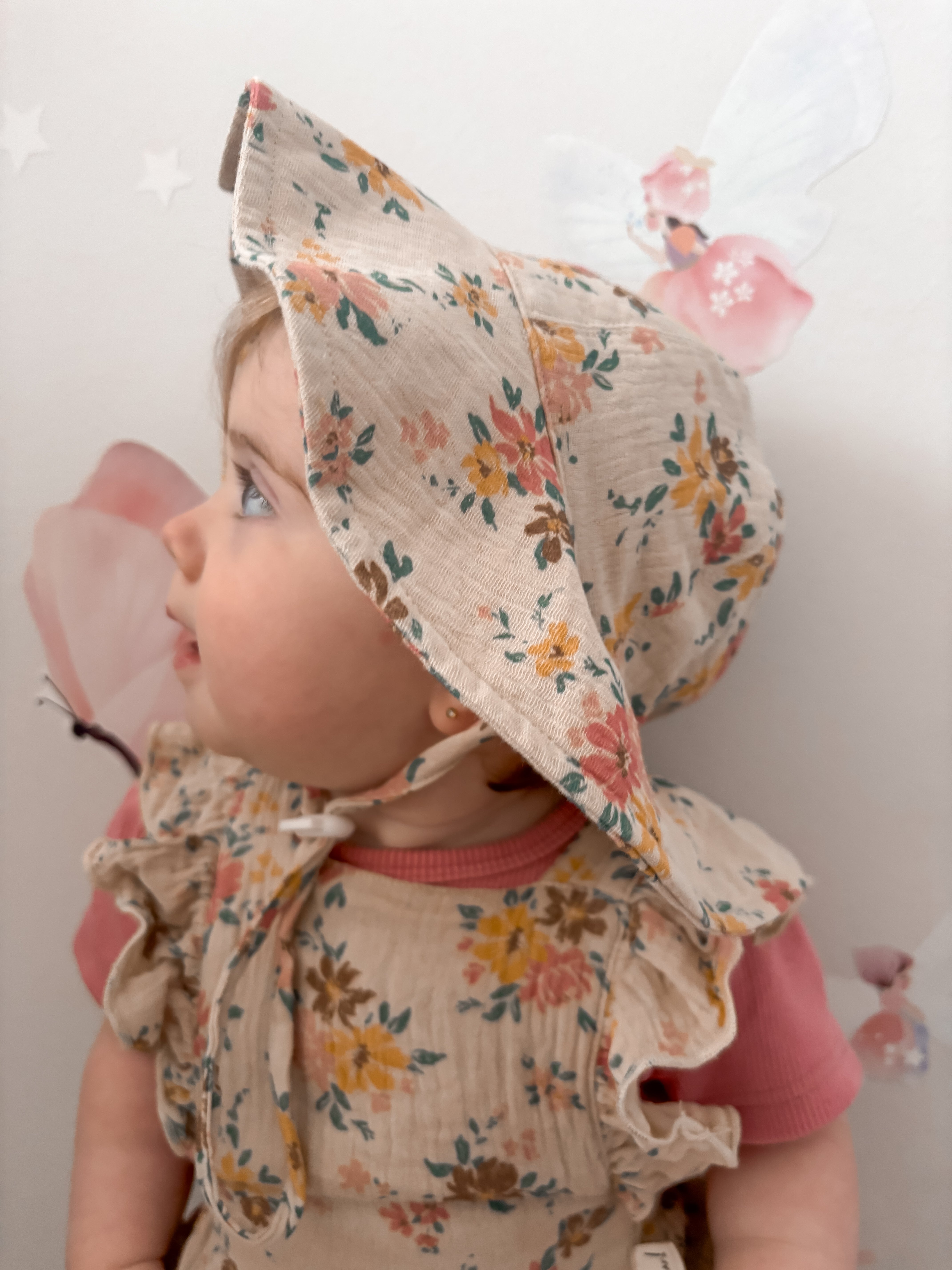 Brighten up sunny days with the Yasmine Floral Sun Hat. Featuring a vintage floral pattern, this playful hat provides sun protection while keeping your little one cool and comfortable. Its lightweight design makes it perfect for outdoor fun and adventures.